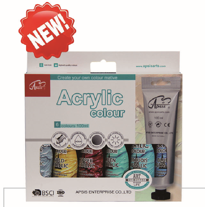 6colors*100ml acrylic color in aluminum-plastic tube with color box